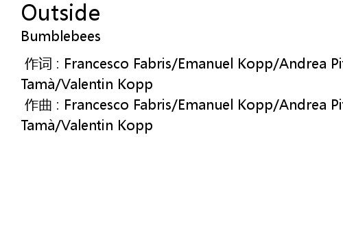 | [00:00.000] | 作词 : Francesco Fabris/Emanuel Kopp/Andrea Piffaretti/Nicolò Tamà/Valentin Kopp |