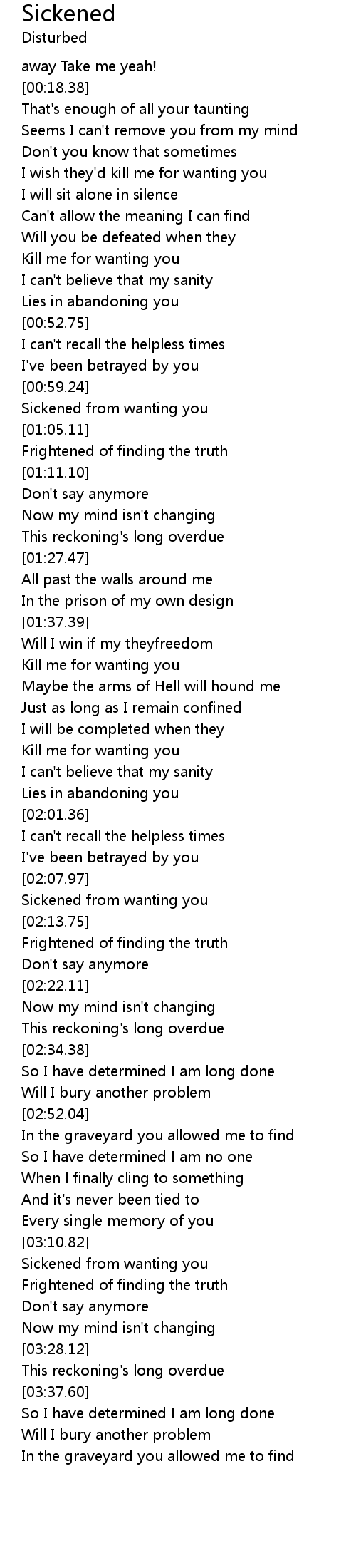 Sickened from wanting you |