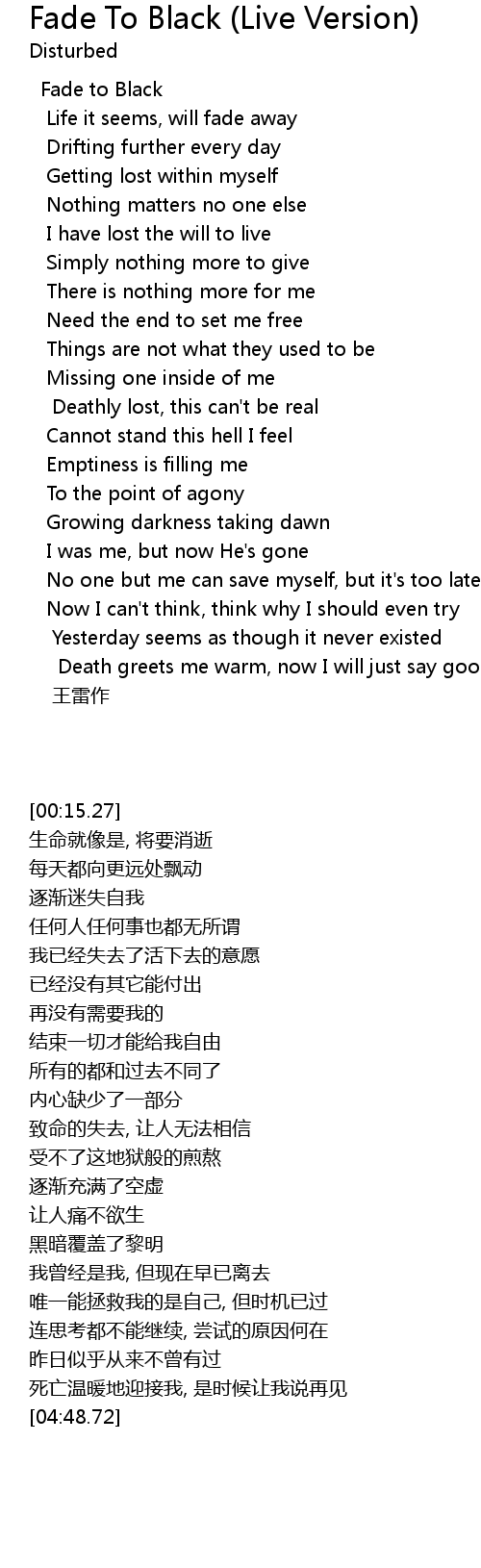 | [00:15.27] | Fade to Black |