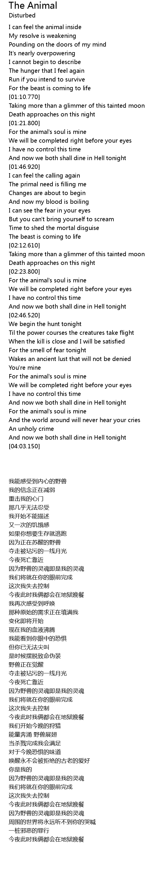 | [03:18.680] | For the animal's soul is mine |