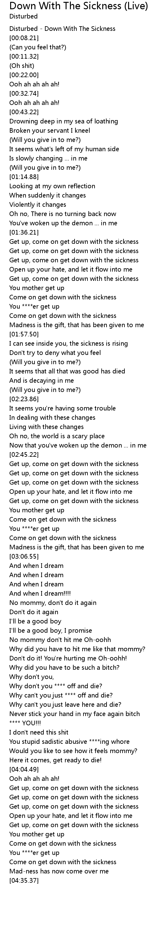 | [04:28.75] | Come on get down with the sickness |