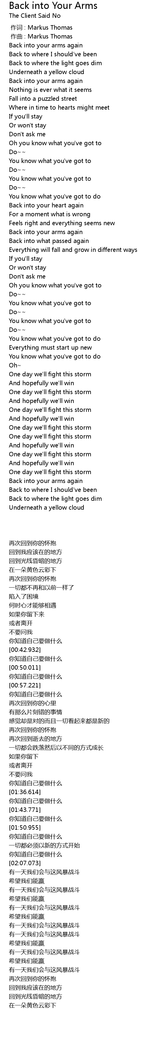 | [00:00.000] | 作词 : Markus Thomas |
