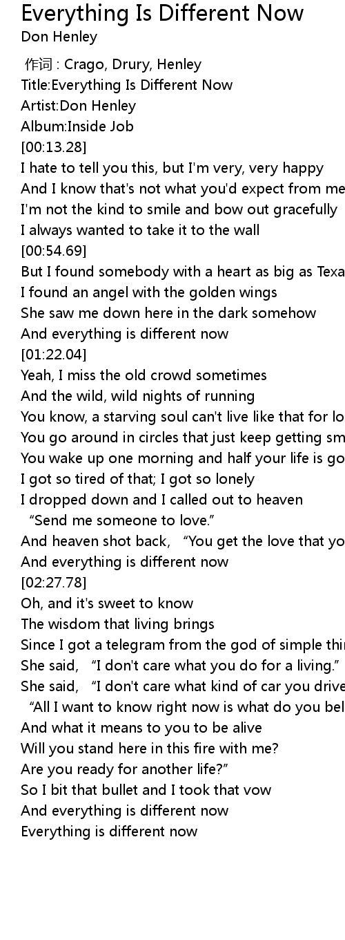 | [00:01.07] | Title:Everything Is Different Now |