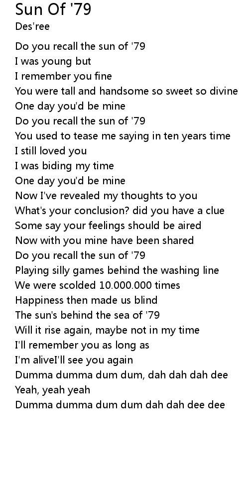 Do you recall the sun of '79 |