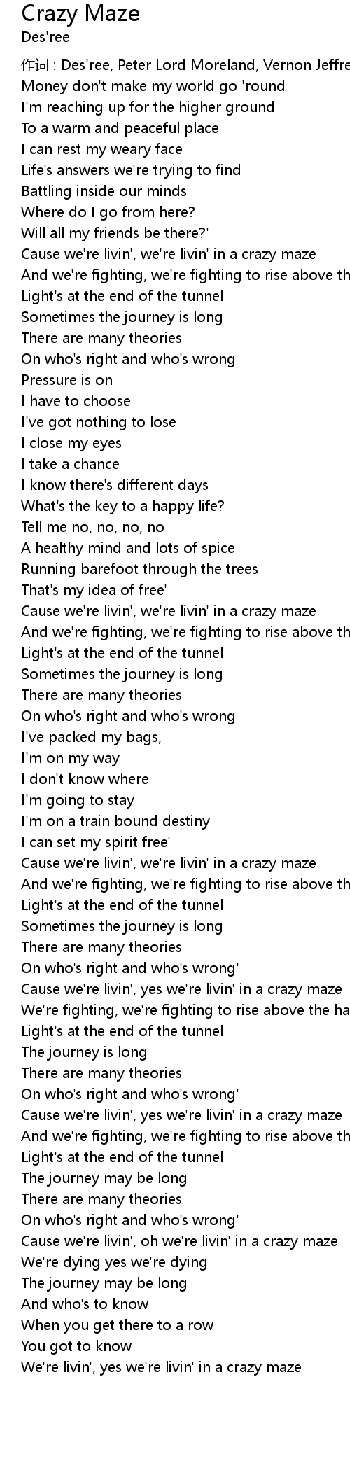 | Cause we're livin', oh we're livin' in a crazy maze | |