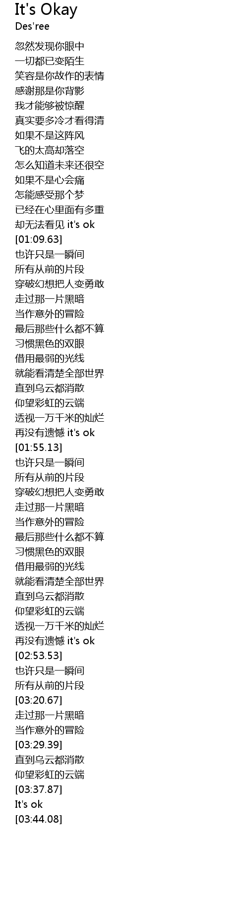 | [01:01.58] | que wu fa kan jian it' s ok |