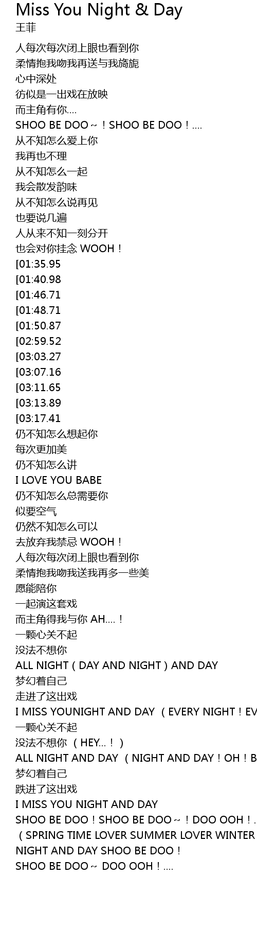 | [05:05.35] | NIGHT AND DAY SHOO BE DOO! |