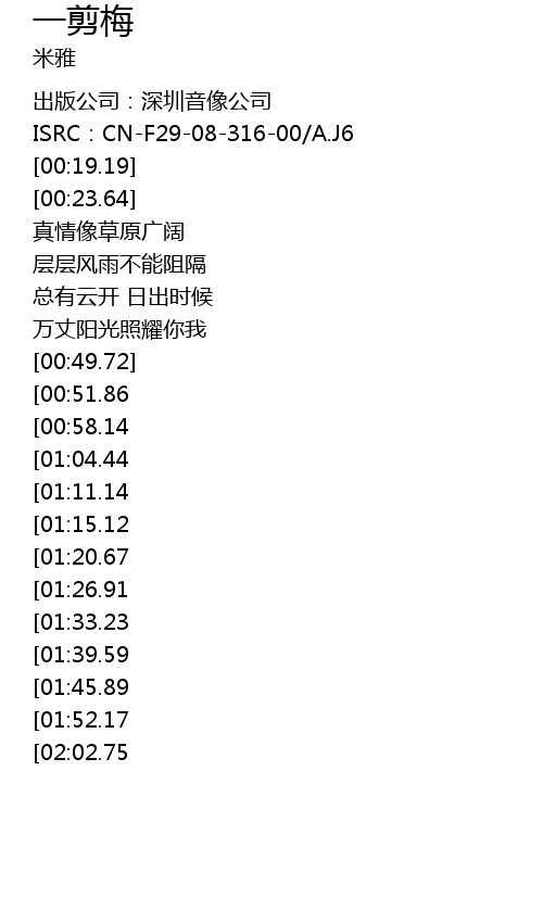 | [02:49.03][01:33.23] | 一剪寒梅傲立雪中 |