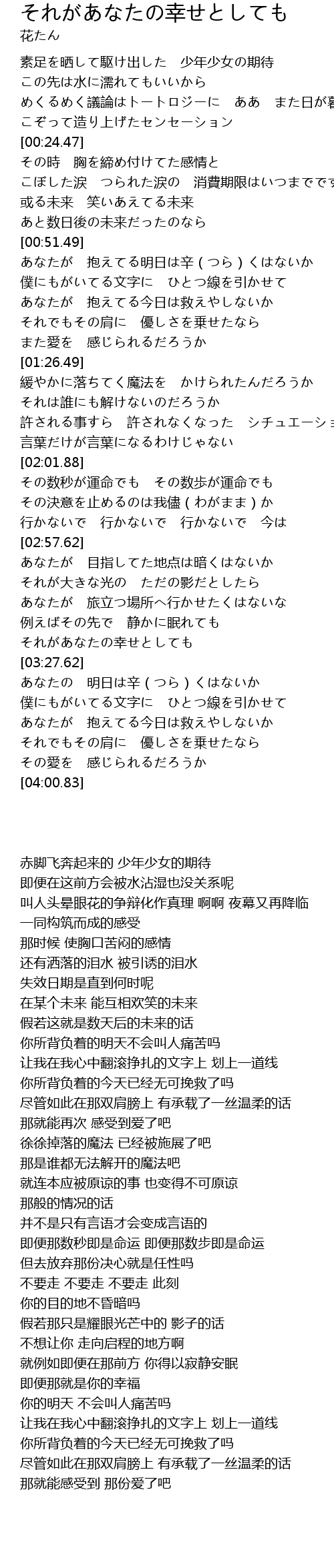 | [02:24.45] | その数秒が運命でも その数歩が運命でも |