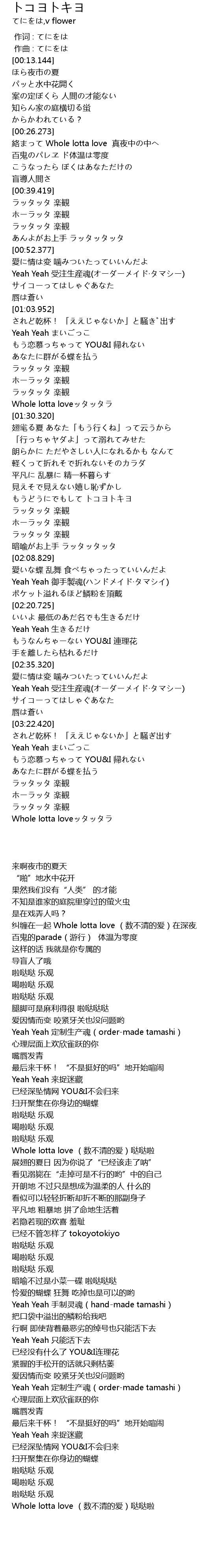 | [01:53.311] | もうどうにでもして トコヨトキヨ |