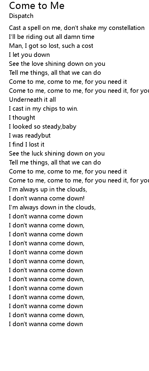 Come to me, come to me, for you need it, for you need it |