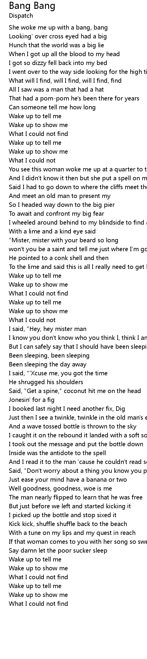 | She woke me up with a bang, bang | |