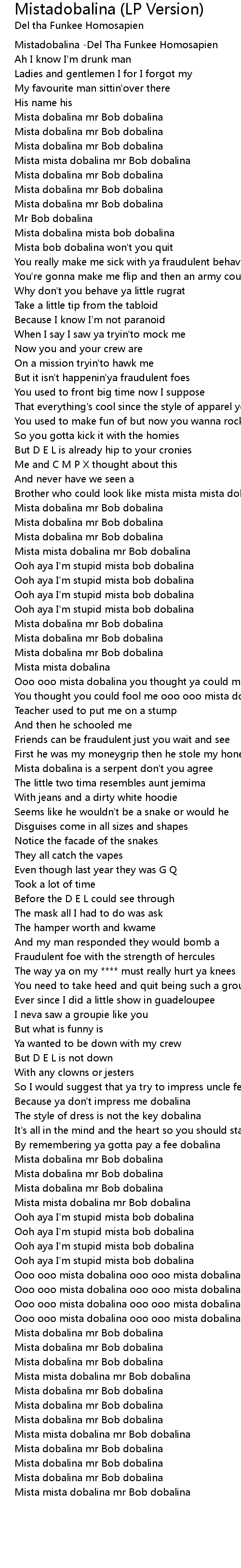 Mista mista dobalina mr Bob dobalina |