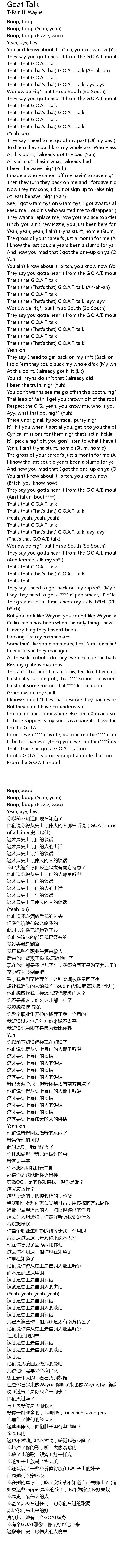 | [00:17.73] | That's that (That's that) G.O.A.T. talk (Ah-ah-ah) |