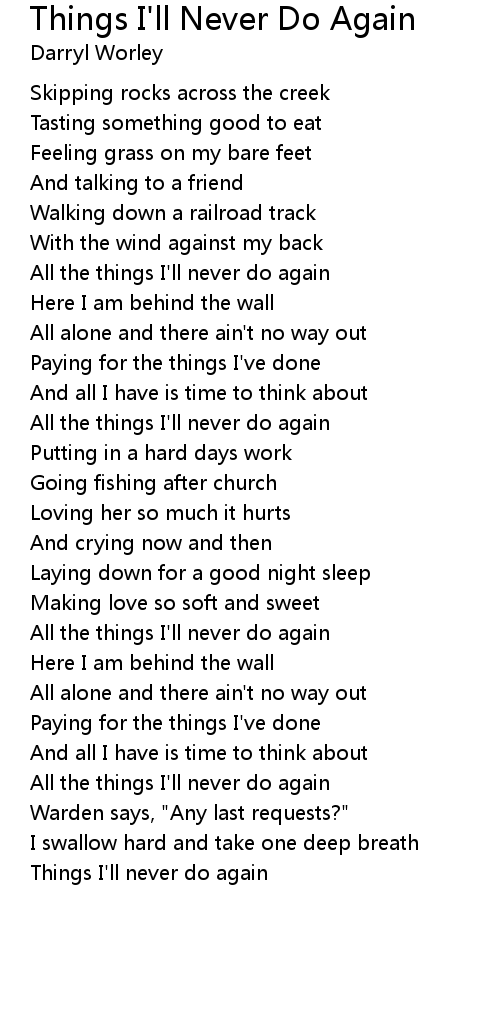 Things I'll never do again |