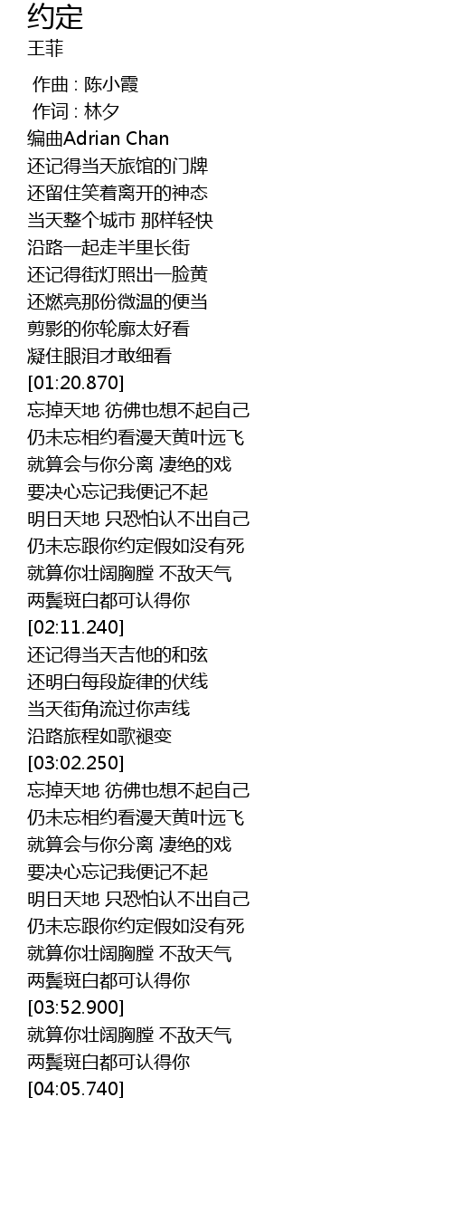 | [03:11.690] | 仍未忘相约看漫天黄叶远飞 |