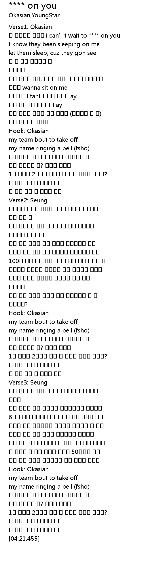 | [03:48.906] | 1등 바라면 2등으로 만족 니 행복은 그것뿐 오케이? |