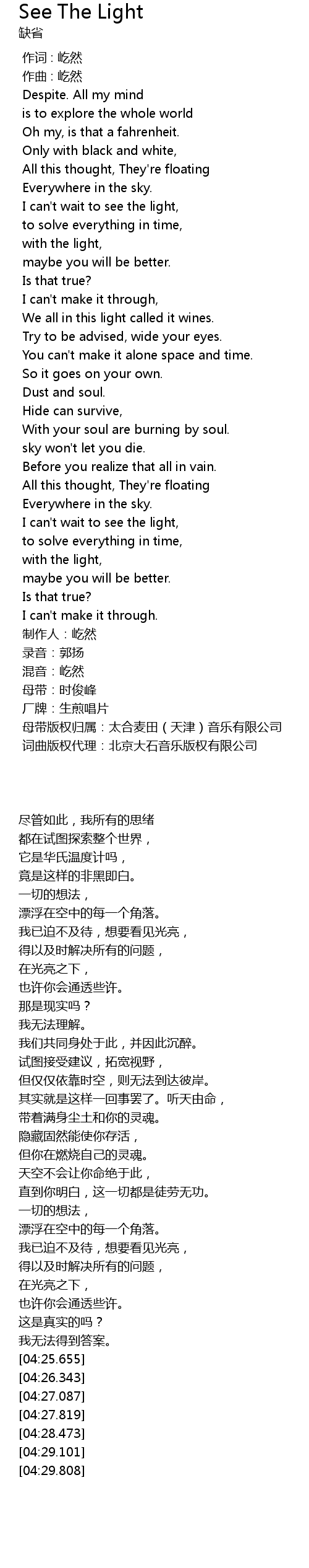 | [04:29.101] | 母带版权归属:太合麦田(天津)音乐有限公司 |