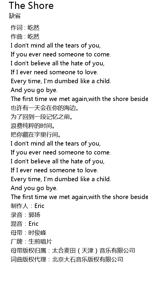 | [02:32.552] | 也许有一天会在你的海边。 |