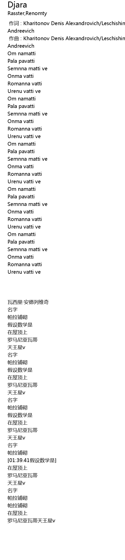 | [00:00.000] | 作词 : Kharitonov Denis Alexandrovich/Leschishin Vasiliy Andreevich |