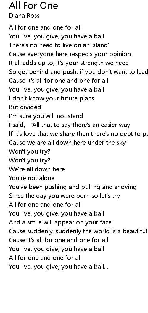 | Cause it' s all for one and one for all | |