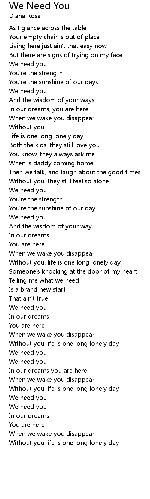 Without you, life is one long lonely day |