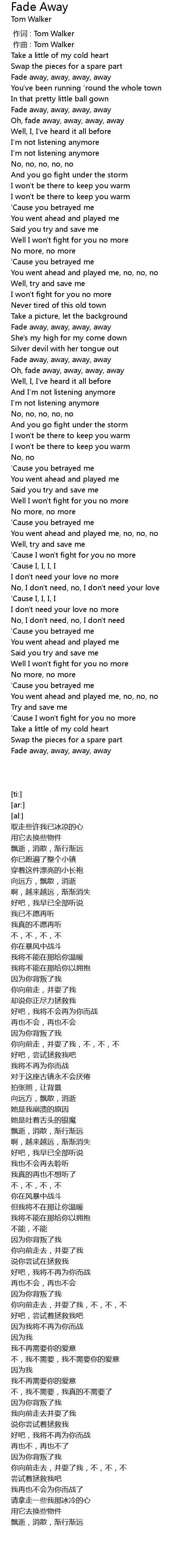 | [00:35.61] | Fade away, away, away, away |