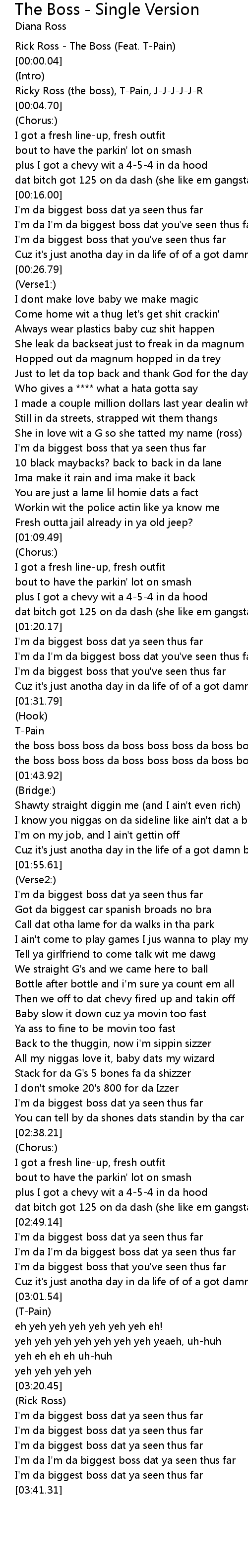 Ricky Ross (the boss), T-Pain, J-J-J-J-J-R |