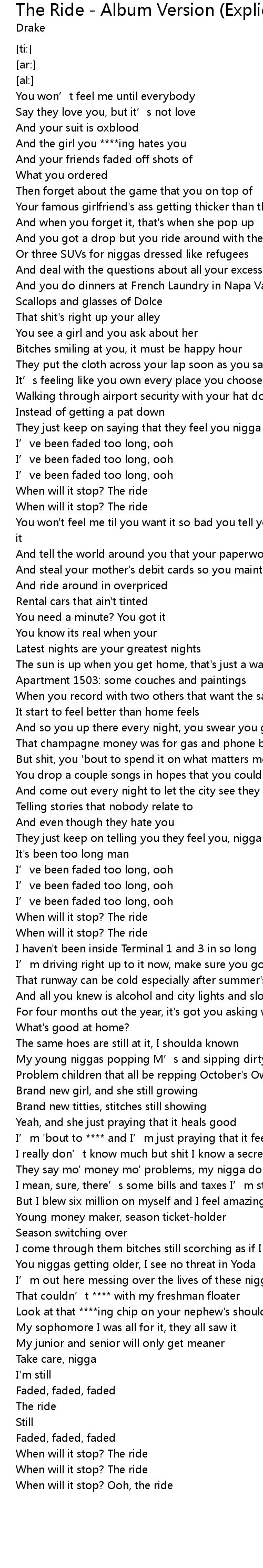 | [02:44.84] | They just keep on telling you they feel you, nigga |