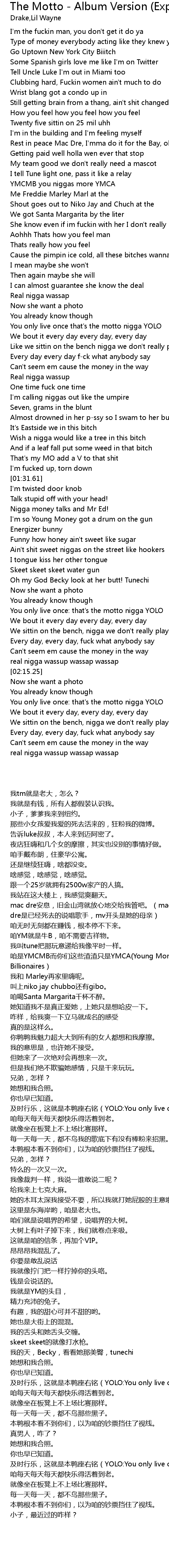 | [02:24.50] | You only live once: that's the motto nigga YOLO |