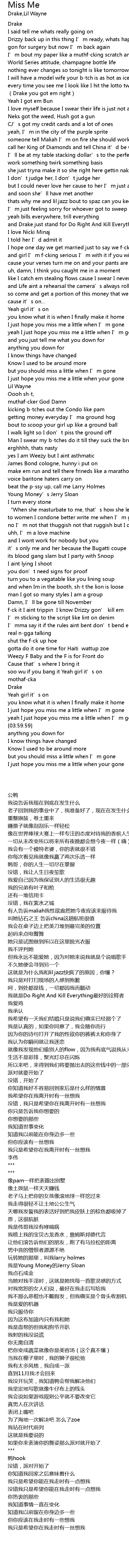 | [03:25.38] | fck it I aint trippin I know Drizzy gon' kill em |