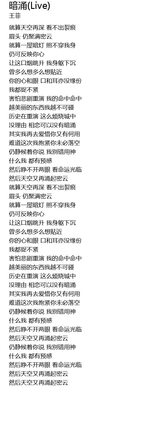 | [00:34.100] | 眉头 仍聚满密云 |