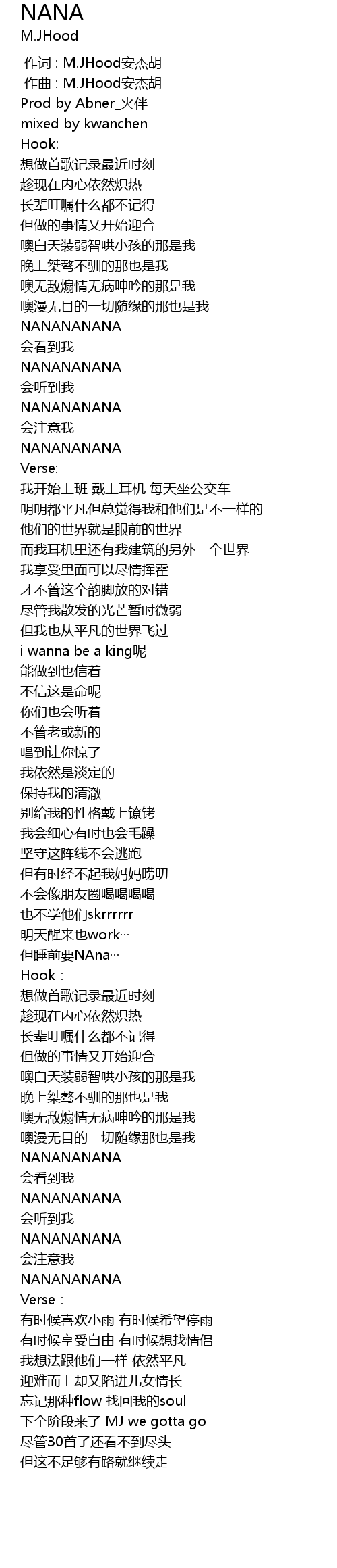 | [00:00.000] | 作词 : M.JHood安杰胡 |