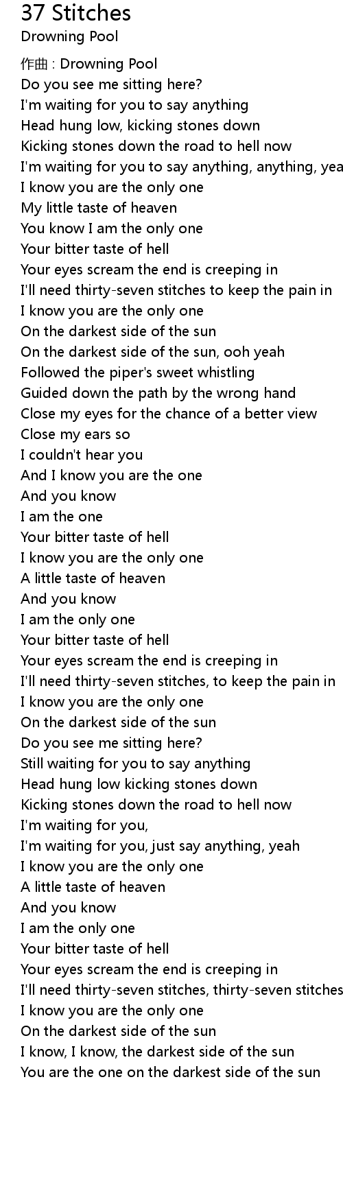 | I'll need thirty-seven stitches, to keep the pain in | |