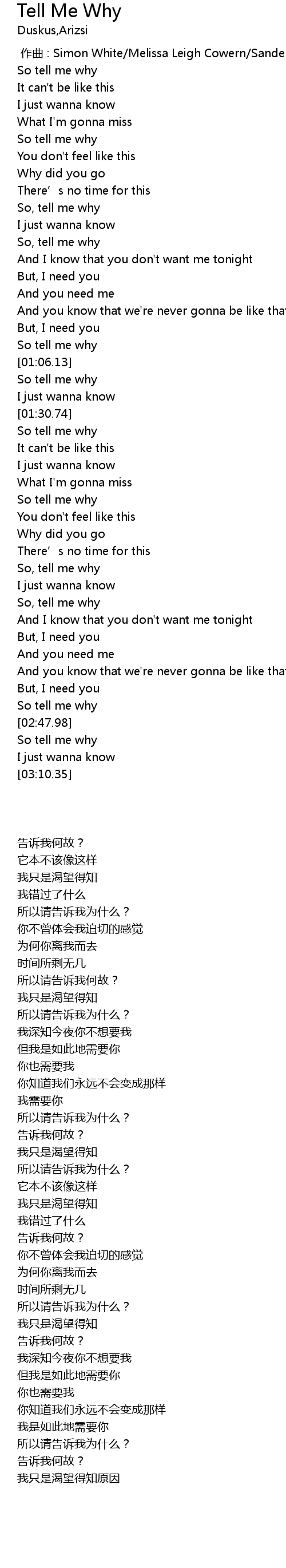 | [02:45.76] | So tell me why |