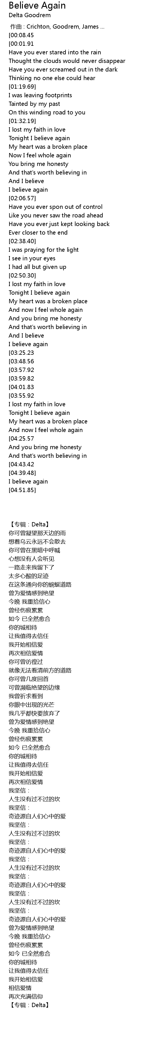 | [04:07.75][03:59.82][03:52.01][03:44.27] | I believe in the miracles |