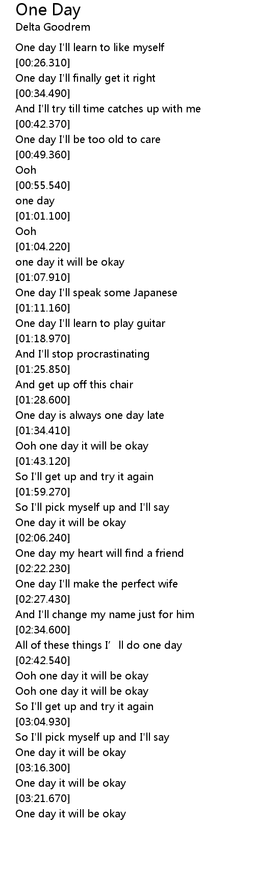 | [03:13.860] | One day it will be okay |