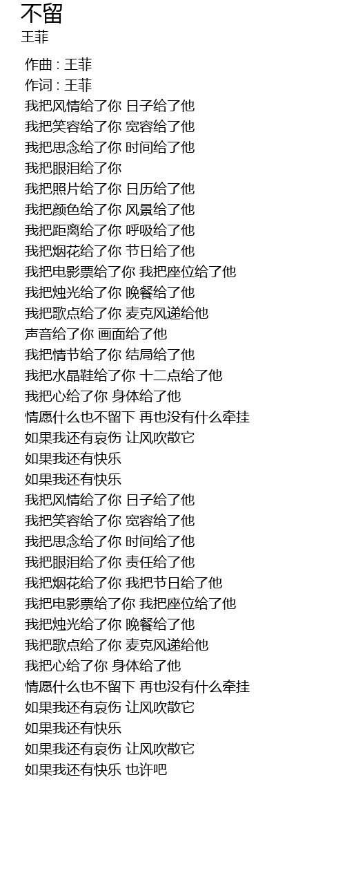 | [00:25.539] | 我把笑容给了你 宽容给了他 |