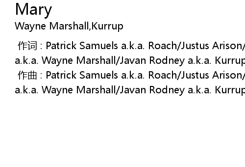 | [00:00.000] | zuò cí : Patrick Samuels a. k. a. Roach Justus Arison Wayne Mitchell a. k. a. Wayne Marshall Javan Rodney a. k. a. Kurrup |