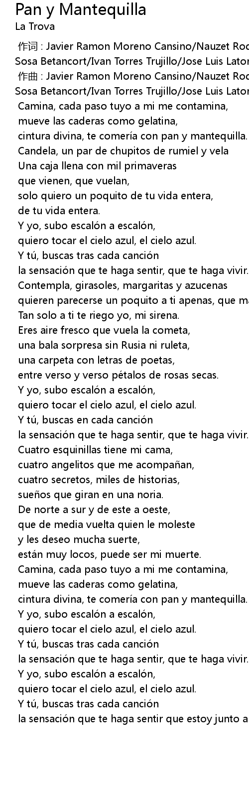 | [00:15.731] | cintura divina, te comerí a con pan y mantequilla. |
