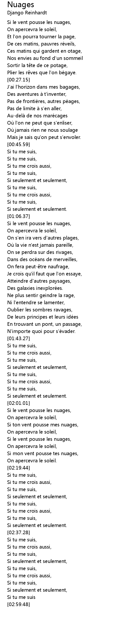 | [02:17.33] | On apercevra le soleil. |