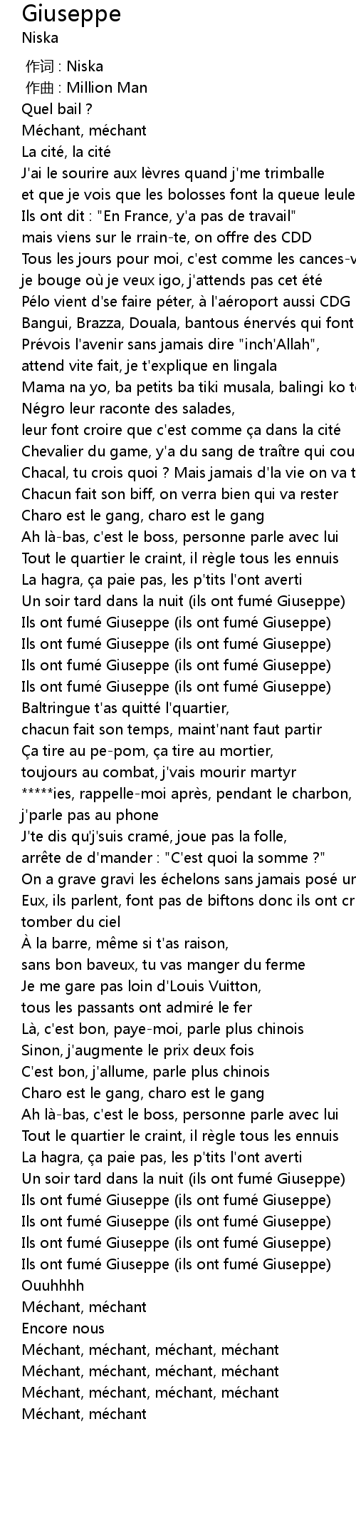 | [02:11.41] | Ils ont fumé Giuseppe (ils ont fumé Giuseppe) |