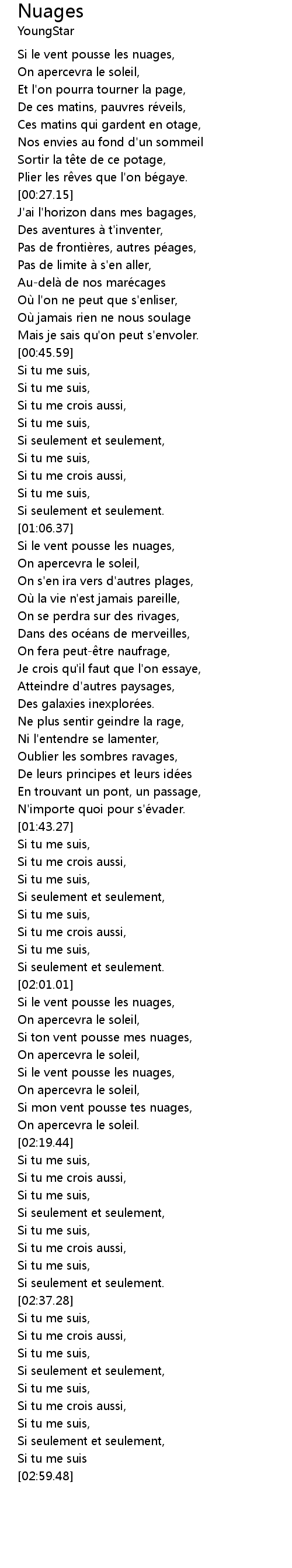 | [02:14.82] | Si mon vent pousse tes nuages, |