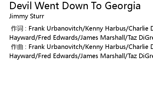 | [00:00.000] | 作词 : Frank Urbanovitch/Kenny Harbus/Charlie Daniels/Charlie Hayward/Fred Edwards/James Marshall/Taz DiGregorio/Tom Crain/K. Slattery |