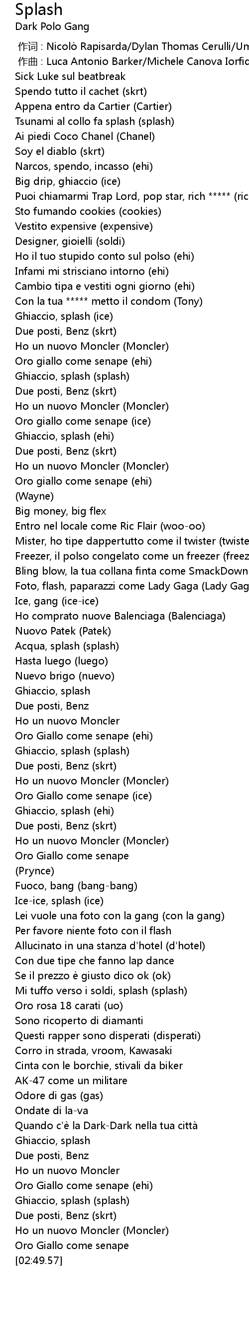 | [01:55.49] | Ghiaccio, splash (ehi) |