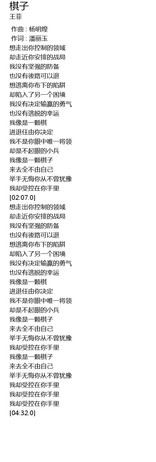 | [03:13.0] | 我像是一颗棋 |