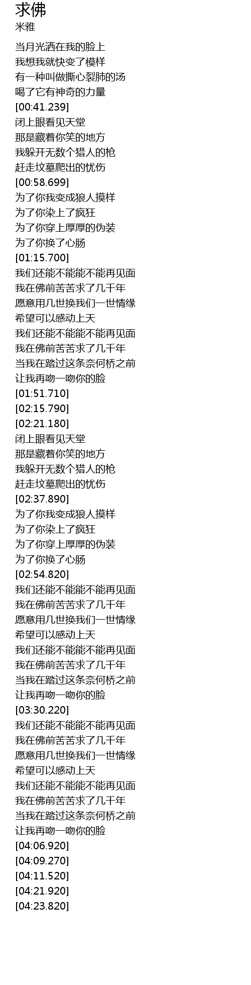 | [02:59.290] | 我在佛前苦苦求了几千年 |