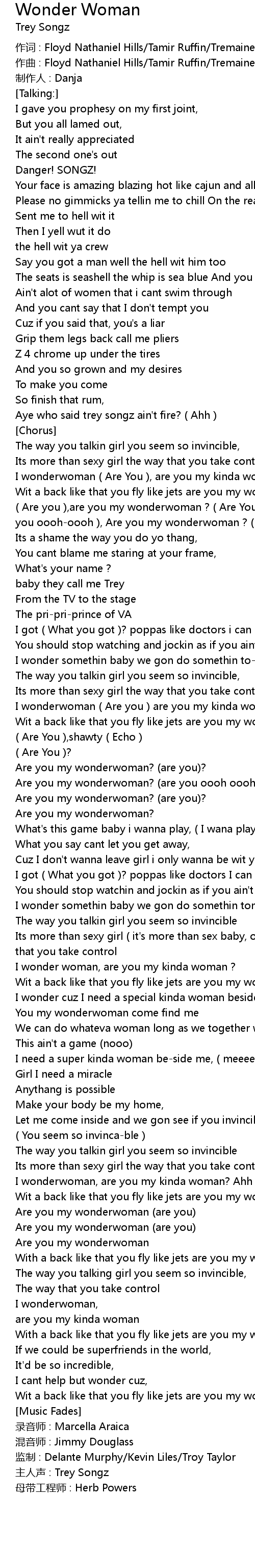 | Are you , are you my wonderwoman ? Are You , are you my wonderwoman ? Are you ooohoooh , Are you my wonderwoman ? Are You are you my wonderwoman ? | |