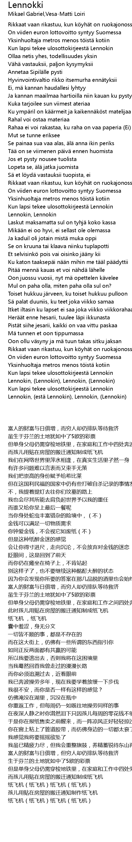 | [02:50.74] | Kun lapsi tekee ulosottokirjeest Lennokin |