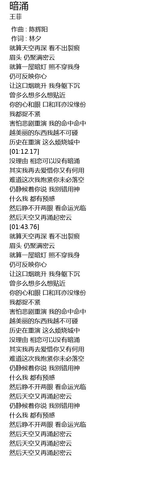 | [01:15.35] | 没理由 相恋可以没有暗涌 |